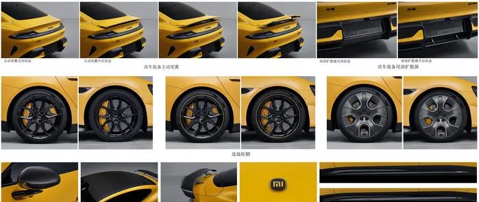 不同的是,此前进行申报的车型,是与发布会亮相的车型有所区别,可以更清晰看到哪些是标配件,哪些是选装件。首先可以看到的是,新车配备了大尺寸的前包围、黑色侧裙、黄色卡钳搭配全新轮圈,以及大尺寸的双色后包围,与普通版车型形成了较为明显的区别。