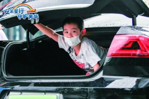 小朋友从一汽-大众新迈腾后备箱中爬出