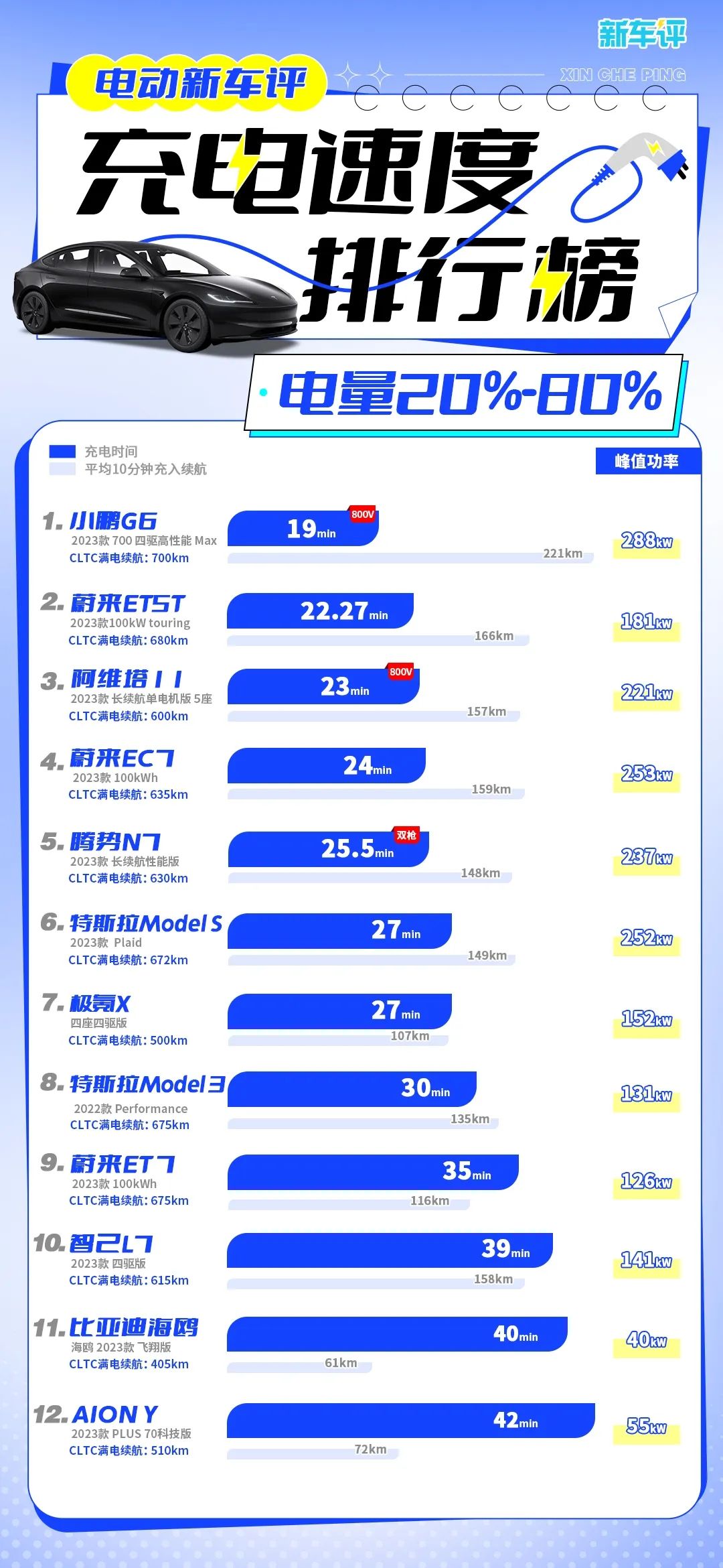 比较可惜的是,AION Y Plus因为它的电池较大,充电功率较低,所以实测充电速度在我们的充电排行榜里面只排到了榜尾的位置。